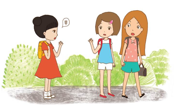 有的同学很快回过神来对阿香说“早安”,也有的同学惊讶得忘了回应阿香。