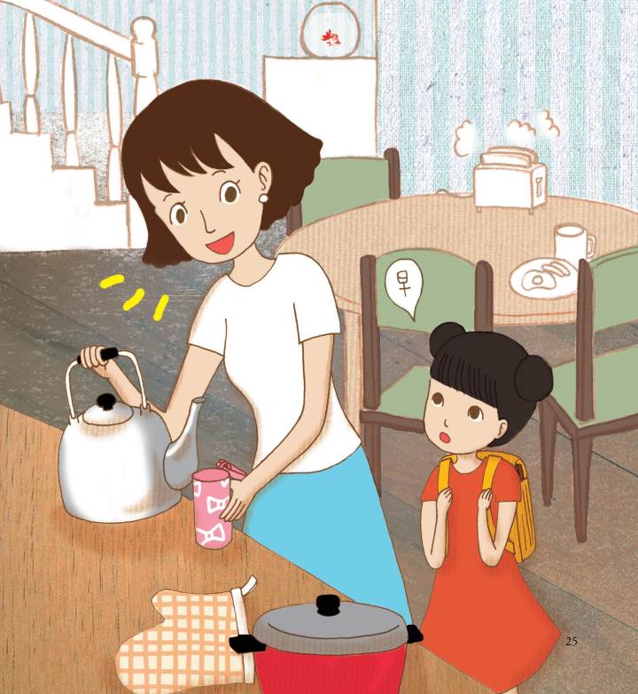 早上,她会跟金鱼说“早安”,因为要“公平”,于是也对妈妈说了声“早”。