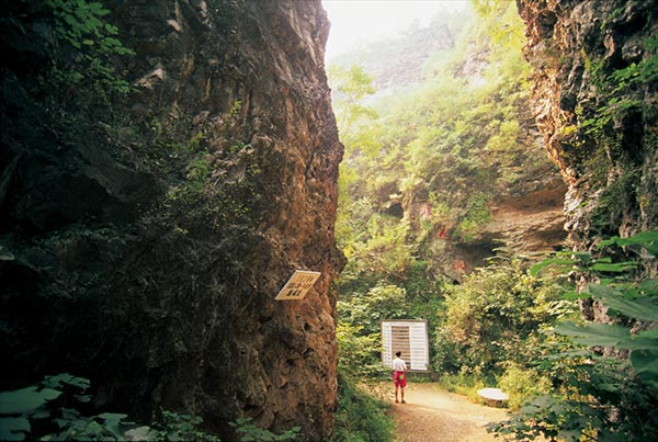 周口店北京人遗址位于北京市西南48千米房山区周口店村的龙骨山。这里地处山区和平原交接处,东南为华北大平原,西北为山地。周口店附近的山地多为石灰岩,在水力作用下,形成许多大小不等的天然洞穴。山上有一东西长约140天然洞穴,俗称“猿人洞”。