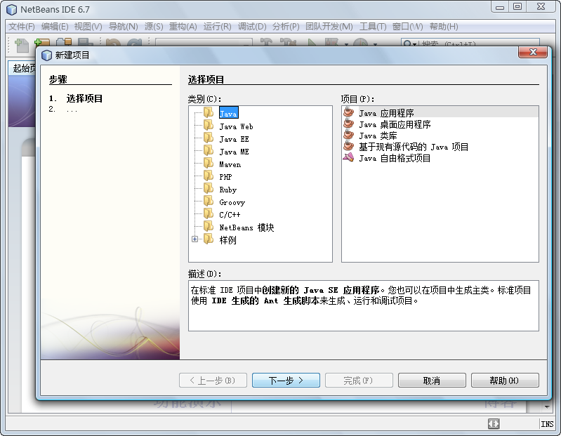 4.使用NetBeans新建项目