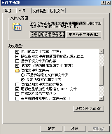 图2-46 取消勾选“隐藏已知文件类型的扩展名”选项