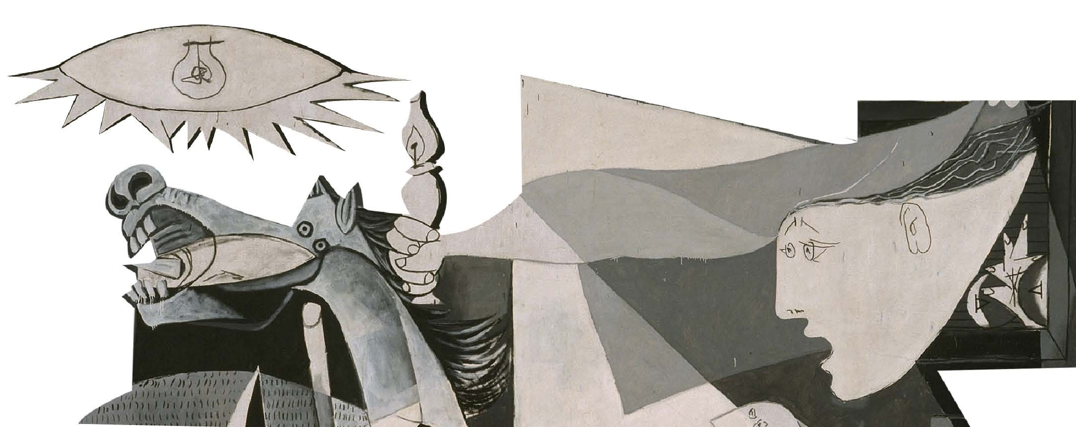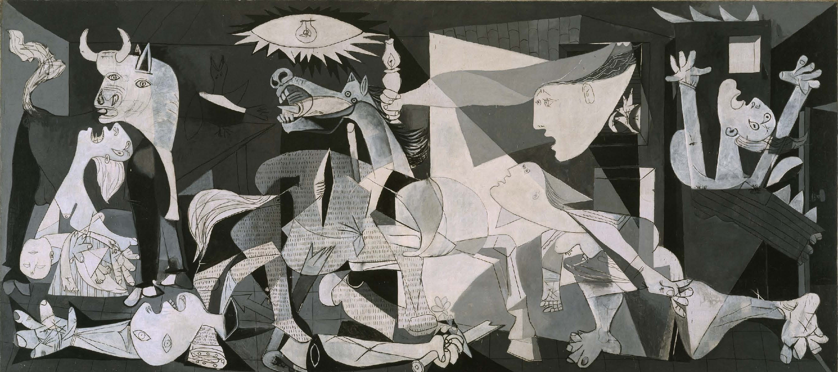因为在这幅画中,毕加索综合运用了立体主义、表现主义、象征主义等多种表现手法,采用夸张、抽象的形象,力图淋漓尽致地展现战争带来的扭曲、苦难与恐怖。这种造型极大地影响了后来的几何抽象主义、构成主义等抽象画派。