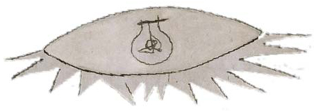 第三部分,从窗口伸出一个惊恐的脑袋,她手持着蜡烛。在蜡烛的旁边,是一盏像眼睛一样的电灯,灯光像锯齿一般,蜡烛和电灯象征着要把法西斯的罪恶大白于人间,又似乎是要为苦难的人民照亮希望的道路。