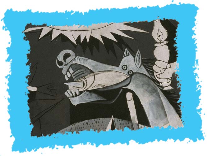 格尔尼卡是西班牙北部的一个重要城镇。1937年,德国法西斯对格尔尼卡进行了狂轰滥炸,格尔尼卡被夷为平地,上千名无辜市民在轰炸中丧生。毕加索对此极为愤怒,于是画了这幅控诉法西斯暴行的名作,并在1937年法国世界博览会西班牙展馆中展出。