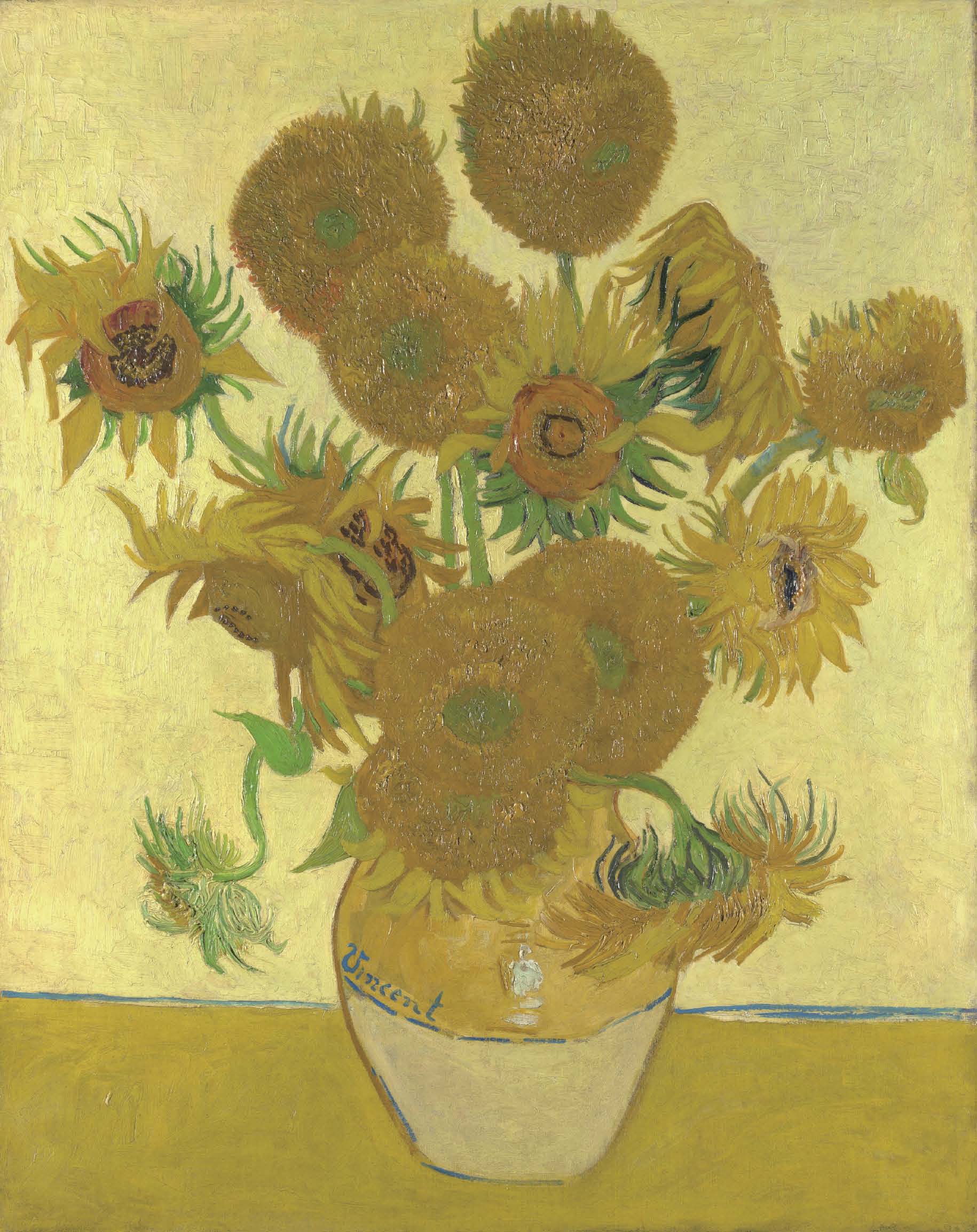 会的。这一幅英国伦敦国家博物馆收藏的《向日葵》中,梵高就在花瓶的弧度弯曲上签下了自己的英文名Vincent。不过,在日本东京所藏的《向日葵》中,梵高并没有签名。