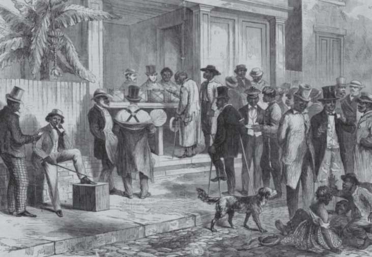 The war ended on April 9, 1865, but the North’s victory was marred by the assassination of President Lincoln five days later. The new President, Andrew Johnson, faced the task of putting the divided country and bitter enemies back together. The Reconstruction Acts of 1867 laid out the process for readmitting Southern states into the Union. The Fourteenth Amendment (1868) provided former slaves with national citizenship, and the Fifteenth Amendment (1870) granted black men the right to vote. These were only the first steps, however, toward reconstructing the fragmented nation. Another move was creating the Freedmen’s Bureau that protected the legal rights of newly freed slaves and set up schools and even churches for them. Thousands of Northerners went south to work as teachers, missionaries and businessmen—the Southerners called them “Carpetbaggers”—meaning that they came south to get what they could for themselves.