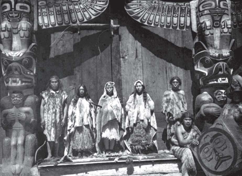 The Northwest Coast area, along the Pacific coast to Northern California, has a mild climate and many natural resources. In particular, the ocean and the region’s rivers provided almost everything its people needed—salmon, especially, but also whales, sea otters, seals and fish and shellfish of all kinds. Because of these riches, the Indians of the Pacifi Northwest were secure enough to build permanent villages that housed hundreds of people. A person’s status was determined by his closeness to the village’s chief and by the number of possessions such as blankets, shells and skins, canoes and even slaves that he had. Goods like these played an important role in the potlatch , an elaborate gift-giving ceremony.