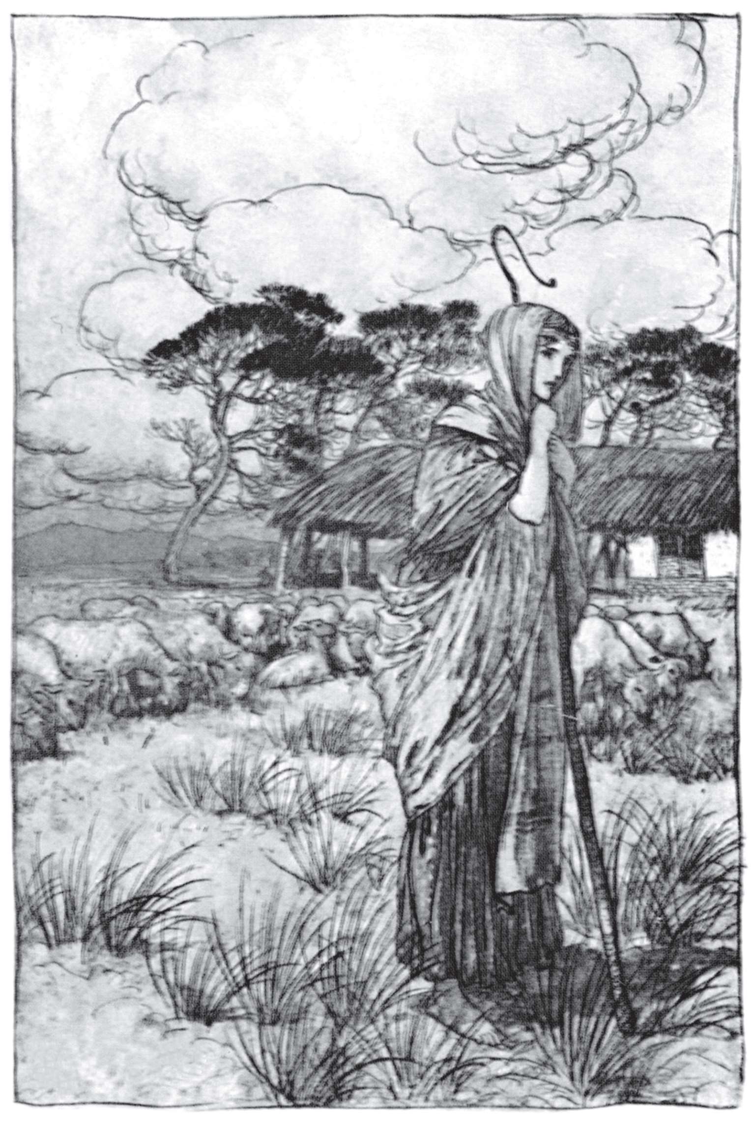 This poor, deserted baby was found by a shepherd. He was a humane man, and so he carried the little Perdita home to his wife, who nursed it tenderly; but poverty tempted the shepherd to conceal the rich prize be had found; therefore he left that part of the country, that no one might know where he got his riches, and with part of Perdita's jewels be bought herds of sheep, and became a wealthy shepherd. He brought up Perdita as his own child, and she knew not she was any other than a shepherd's daughter.