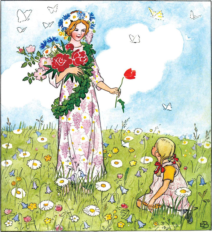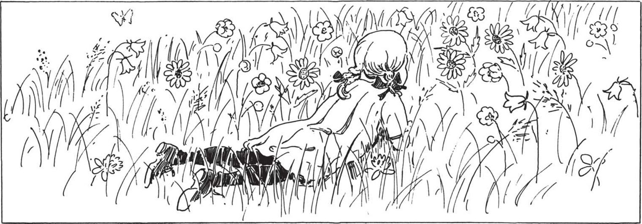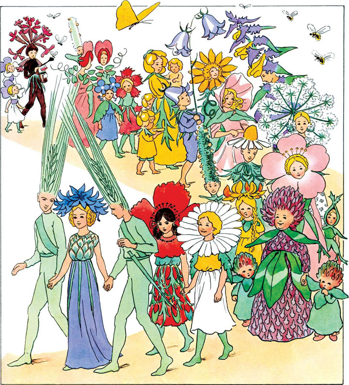 很快,第一批客人陆续到来了。矢车菊和大麦家的男孩子们走在最前面。跟在他们后边的有雏菊、罂粟、苜蓿、篱笆蔷薇、仙履兰、梯牧草、春黄菊、野细叶芹、旋花、钓钟柳、毛茛花、婆婆纳、布谷鸟剪秋萝、巢菜和野三色堇——种类繁多,几乎不可能一一尽数。蜜蜂和野蜂嗡嗡叫着,蟋蟀在尽情地玩耍,钓钟柳则叮当作响。