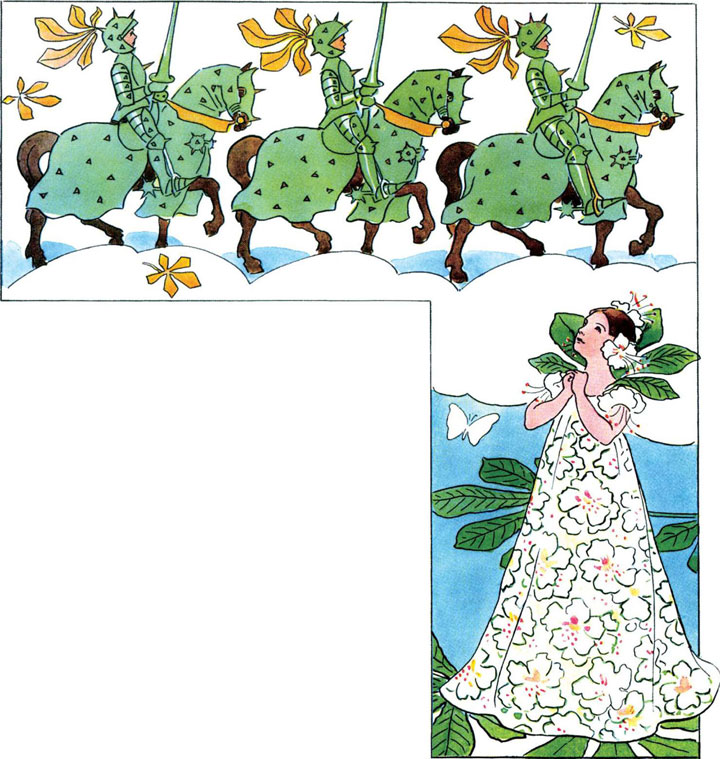草地上的花儿们将三叶车轴草——可爱的番泻叶公主抬了起来,抛在空中,高喊道:“番泻叶公主万岁!”