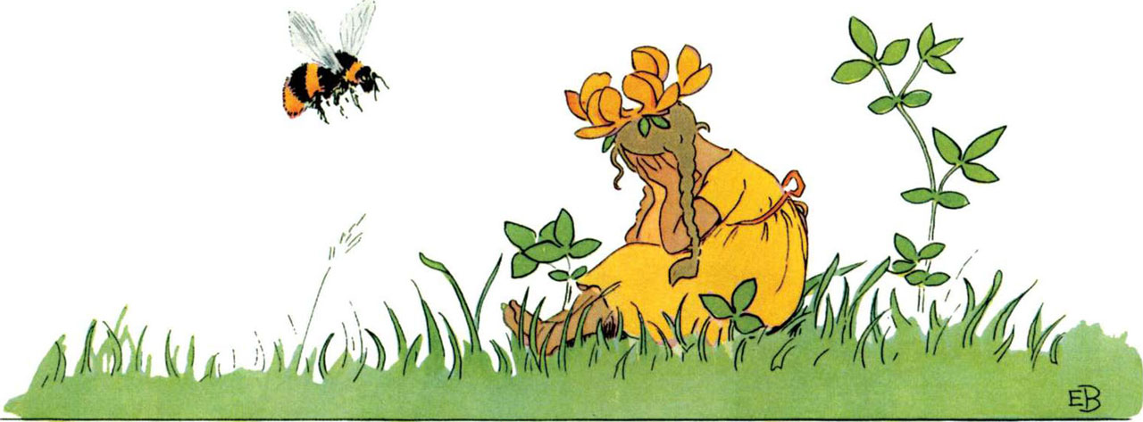 一只野蜂嗡嗡叫着,飞到了玫瑰女王的座前,它后面跟着羞怯的三叶车轴草。
