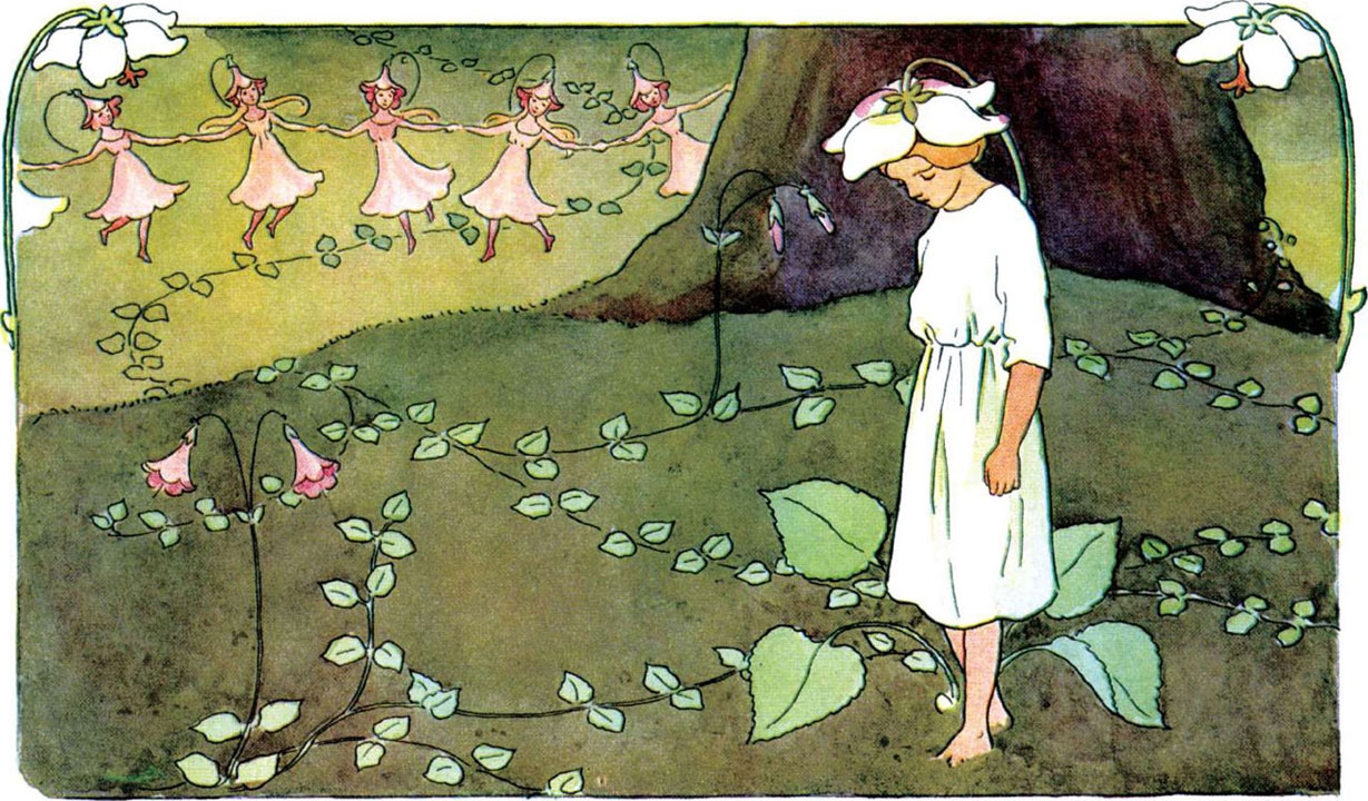 丽莎跑去采摘几朵野花,但是野花却古怪地朝她频频点头。于是,她趴在草地上,朝钓钟柳、雏菊和毛茛花点头致意。这时,她突然听到有人喊她的名字,不由得吓了一大跳,连忙抬头望去。