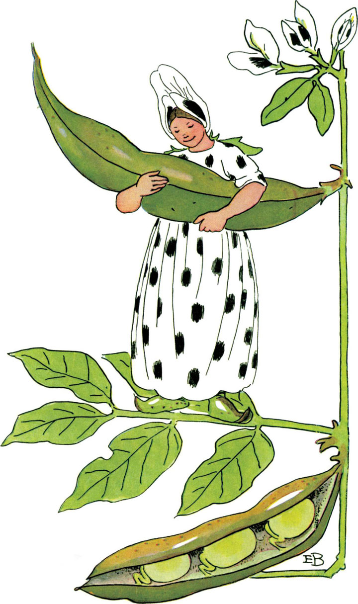 蚕豆太太有三个婴孩。她为孩子们做了一个长长的绿色摇篮。她把他们放在摇篮里,给他们盖上柔软的绿色毯子。然后,她一边晃动着摇篮,一边唱着摇篮曲。