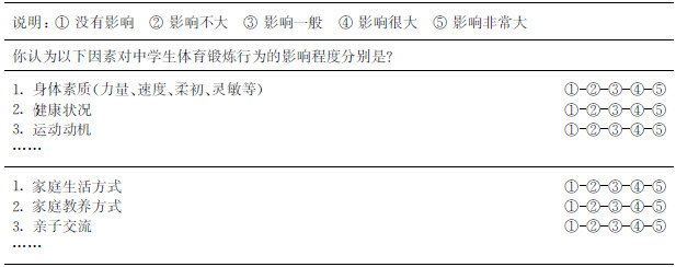 表2-7 上海市中学生体育锻炼行为生态学模型问卷(样题)