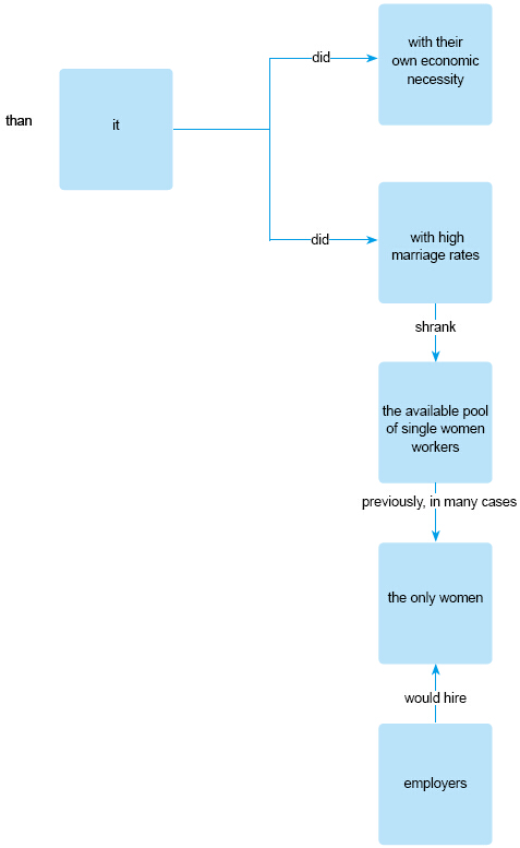 The increase in the numbers of married women employed outside the home in the twentieth century had less to do with the mechanization of housework and an increase in leisure time for these women than it did with their own economic necessity and with high marriage rates that shrank the available pool of single women workers, previously, in many cases, the only women employers would hire.