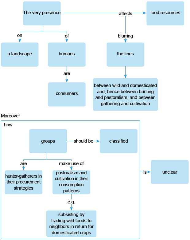 The very presence on a landscape of humans who are consumers affects food resources, blurring the lines between wild and domesticated and, hence between hunting and pastoralism, and between gathering and cultivation.Moreover, it is unclear how groups should be classified that are hunter-gatherers in their procurement strategies but that make use of pastoralism and cultivation in their consumption patterns––subsisting, for example, by trading wild foods to neighbors in return for domesticated crops.