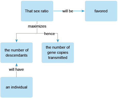 That sex ratio will be favored which maximizes the number of descendants an individual will have and hence the number of gene copies transmitted.