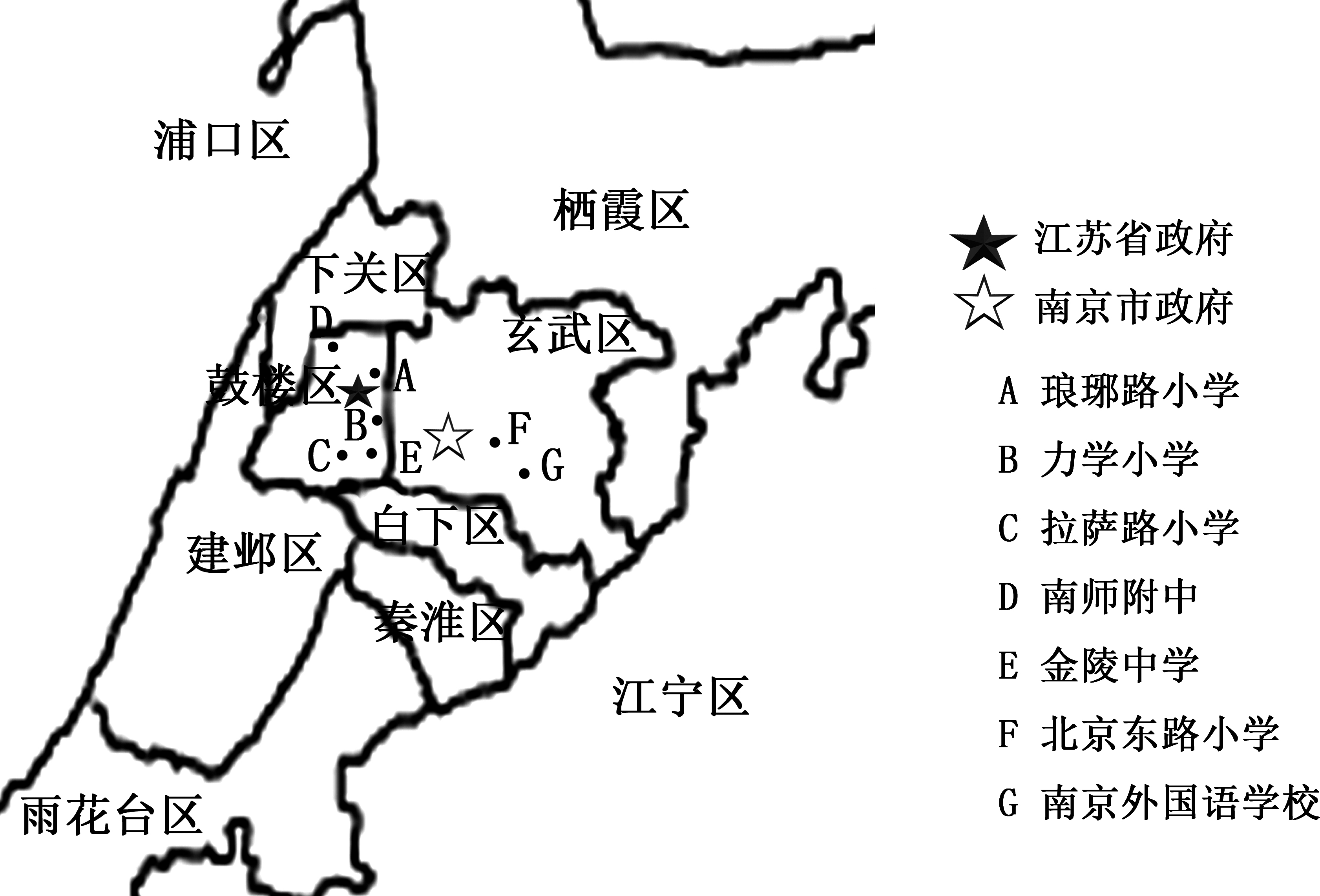 注:图中标明的仅是南京的“四大名小”和“三大名校”的主(老)校区,其他分校区或集团分校并未标出。