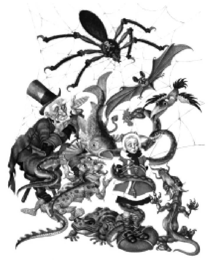 沼泽女人正好在家里,因为那天说好魔鬼和他的曾祖母要来登门拜访。那个曾祖母是一个非常恶毒的老太婆,她从来就闲不住的,甚至出门也带着自己的手工活来干。今天她也随身带来了,那是给人的鞋子里缝上一块“不许停下来”的皮子,让穿上那双鞋的人永远走个不停,无法安宁。她还绣得出谎言来,会用钩针把散落在各地的流言蜚语都编织到一块儿,用来害人,诱人堕落。唉,这个老曾祖母啊,她就这样缝呀、绣呀、编织呀,忙个不停。