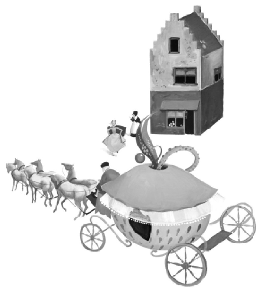 灰姑娘把那些蜥蜴拿来后,神母仙子就把它们变成了六个男仆,他们穿着编成麻花状的衣服,立刻自动地站到马车后面,他们恭敬地待在那里,那么安静,似乎一直以来他们什么事都没有做过,而只是活着。