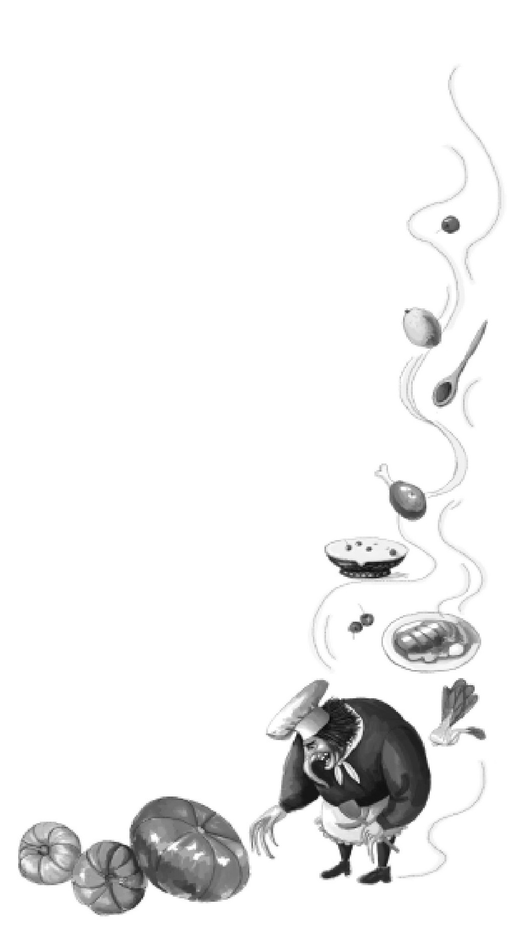 “这两道菜太容易做了,”小矮人回答说,大家听了,说不出的惊讶,其实他当松鼠时常做这些菜,“没有比这更容易做的菜啦!做汤,请给我几种蔬菜、几种香料,还有野猪油、根菜和鸡蛋;做丸子嘛,”他低声说,只有厨师长和早点师才能听到,“做丸子,我需要四种肉、一点料酒、鸭油、生姜和一种叫‘开胃菜’的东西。”