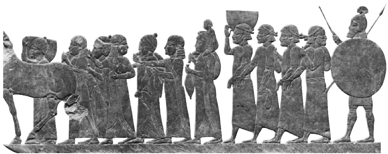 公元前7世纪中叶,亚述帝国渐渐衰落。公元前626年,居住在新巴比伦的迦勒底人和东边的米底人联合起来进攻亚述。公元前612年,新巴比伦和米底联军攻进了尼尼微。尼尼微在被洗劫一空后,又被放了一把大火,一代名城尼尼微和庞大的亚述帝国一起,就这样从地面上消失了,同时消失的还有那些巨型浮雕。