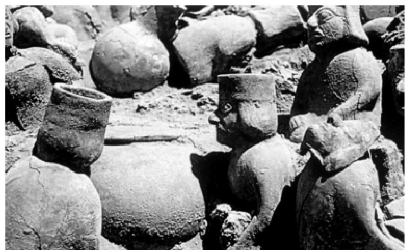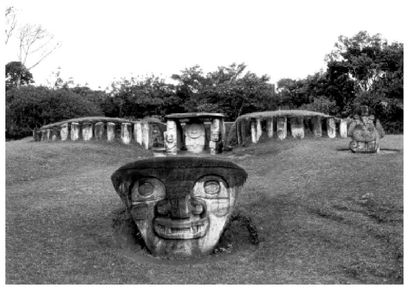 就在科泽科克斯西边,从圣地亚哥·图斯特拉镇出发,向西南方向行驶25千米,穿过葱翠的原野,便是崔斯萨波特古城;科泽科克斯的南边和东边则是圣罗伦佐城和拉文达城,在这些地方,无数的典型奥尔梅克人雕刻品相继出土。有些雕刻的是庞大的头颅,重达30吨,其他的是巨型的石碑,上面镌刻着两个相貌完全不同的种族——都不是美洲印第安人——相会的情景。制作这些杰出艺术品的工匠,肯定是属于一个精致的、高度组织化的、繁荣富裕的、科技上相当发达的文明。令研究者们困惑的是,除了艺术品之外,这个文明没有留下任何东西让后人探寻它们的根源和性质,它们的存在又有什么样子的代表意义。唯一能够确定的是奥尔梅克人在公元前1500年左右,带着已经得到了充分发展的、高度文明的文化,突然出现在了中美洲这片神奇的土地上。