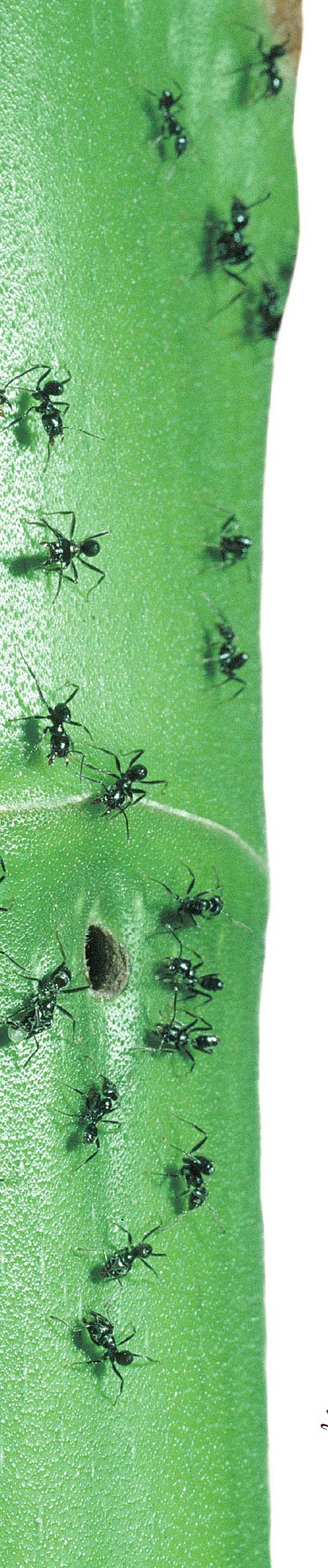 这些南美蚂蚁生活在号角树内部,为了报答号角树提供的住所,它们会攻击一切食用号角树树叶的生物。