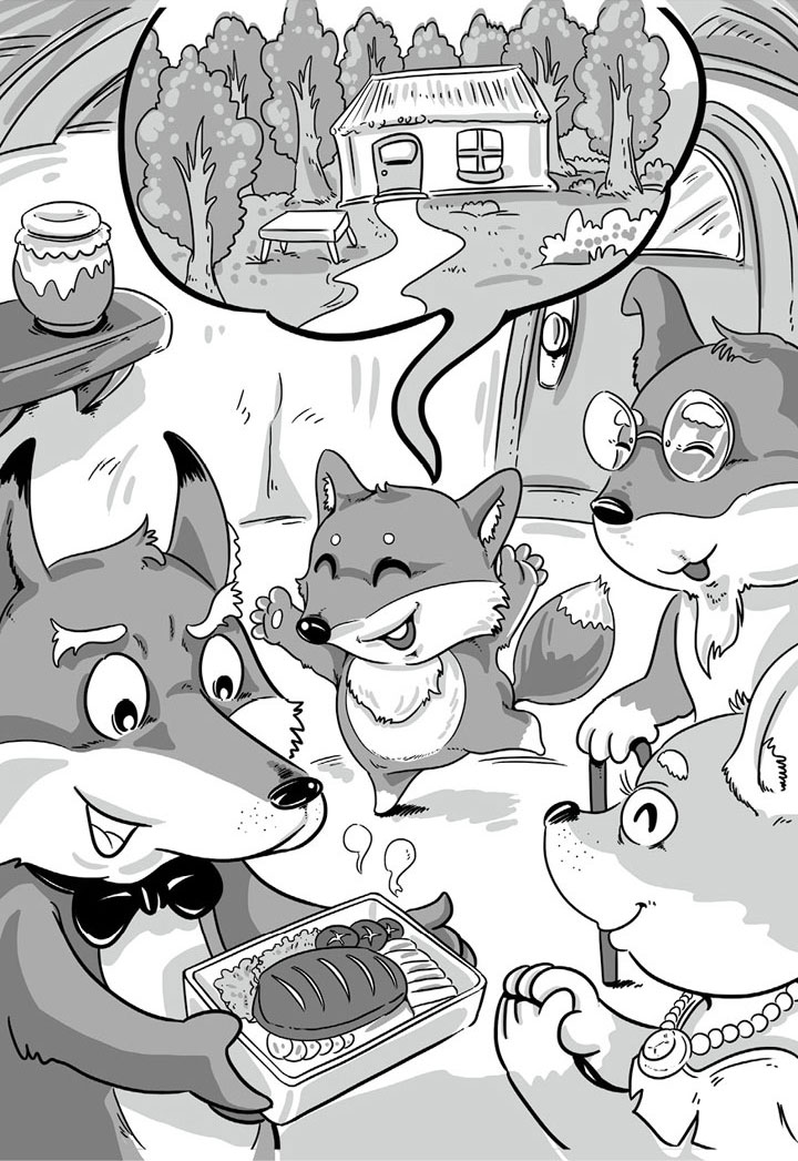 “看,这是什么?”小狐狸打开午餐盒,一整块牛排出现在大家面前。虽然牛排已经凉了,但肉的香味立刻充满了一家人敏感的鼻子。