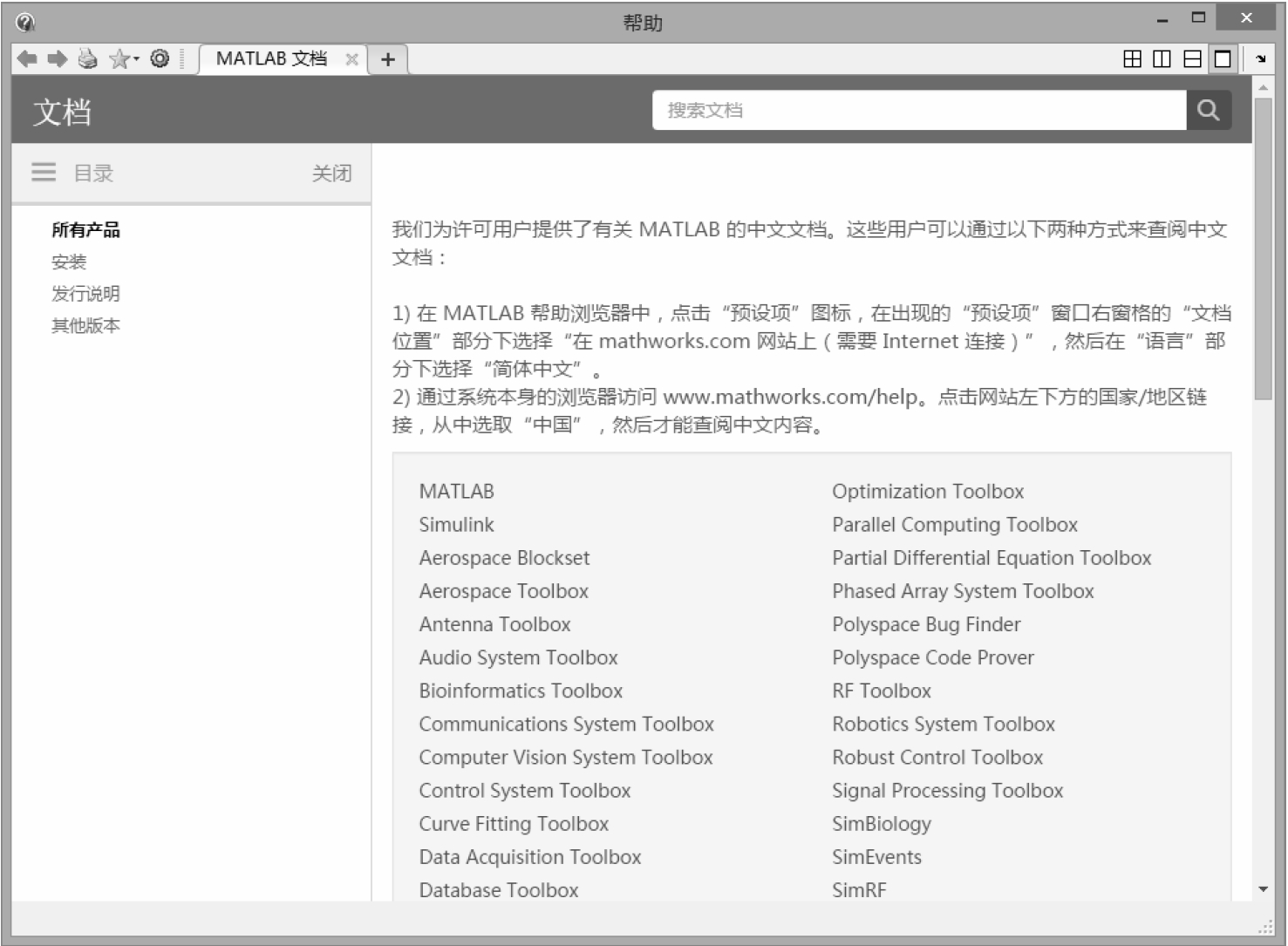 帮助系统是软件的重要组成部分,帮助系统中的文档的编制质量直接关系到应用软件的记录、控制、维护、交流等一系列工作。MATLAB帮助系统对所有使用MATLAB进行科学计算的用户都有很大的帮助作用。
