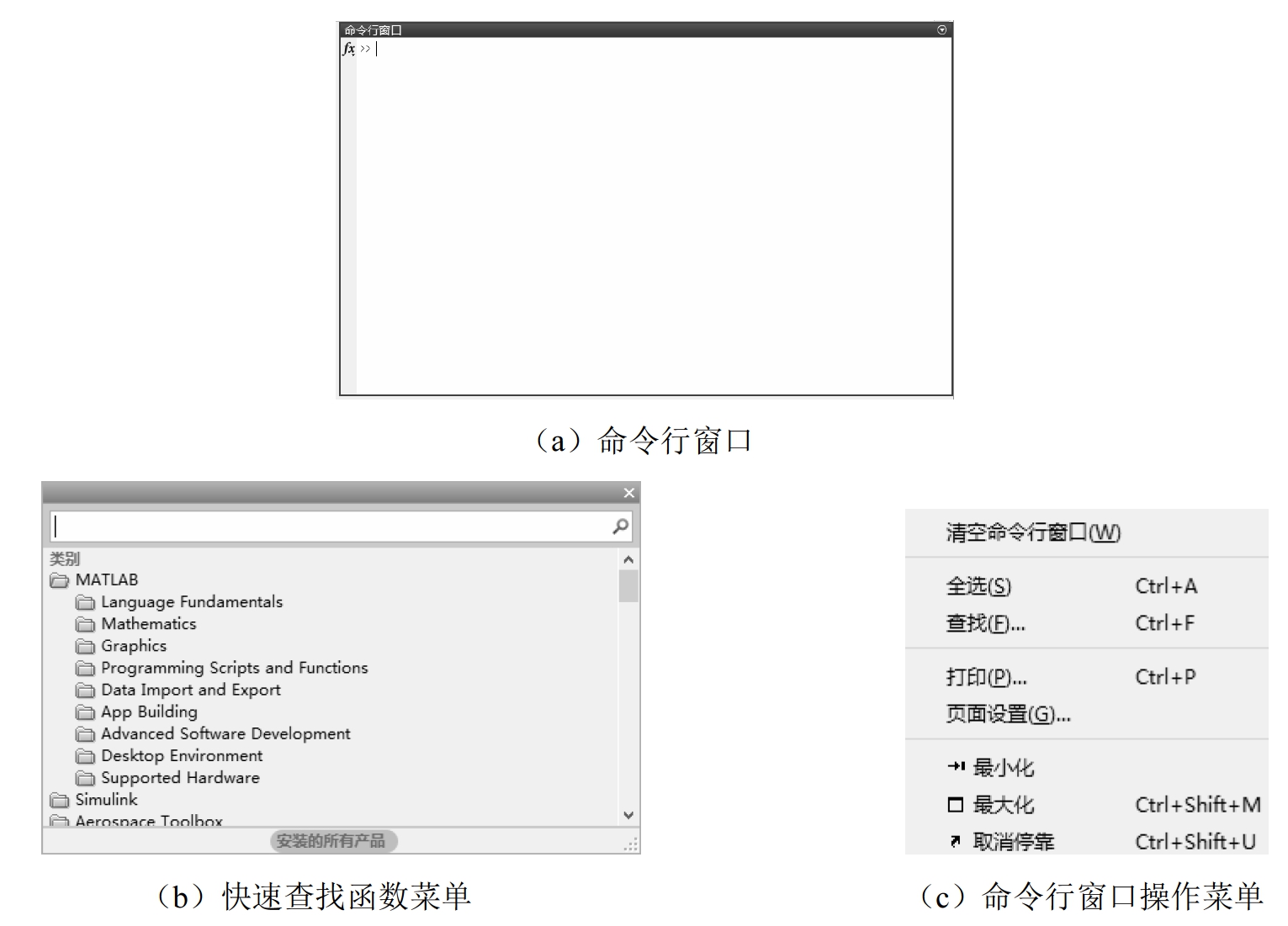 MATLAB主界面包括标签栏、菜单栏、工具栏和各个不同用途的窗口。下面介绍MATLAB各交互界面的功能及操作方法。