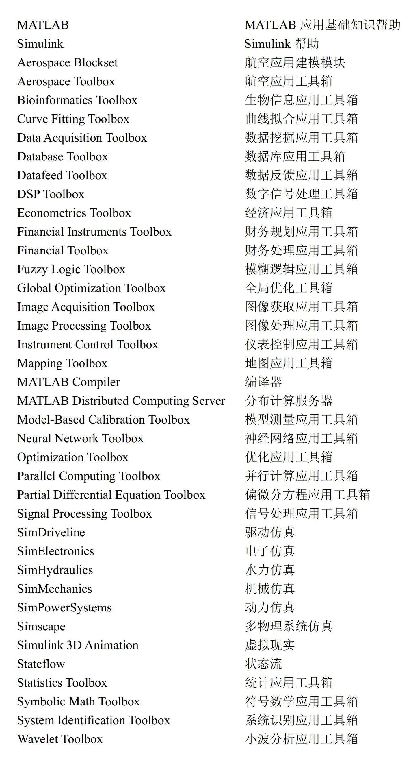 MATLAB中的所有函数,无论是内建函数、M文件函数,还是MEX文件函数等,一般情况下它们都有使用帮助和函数功能说明;即使是工具箱,也通常具有一个以工具箱名称相同的M文件来说明工具箱的构成内容。
