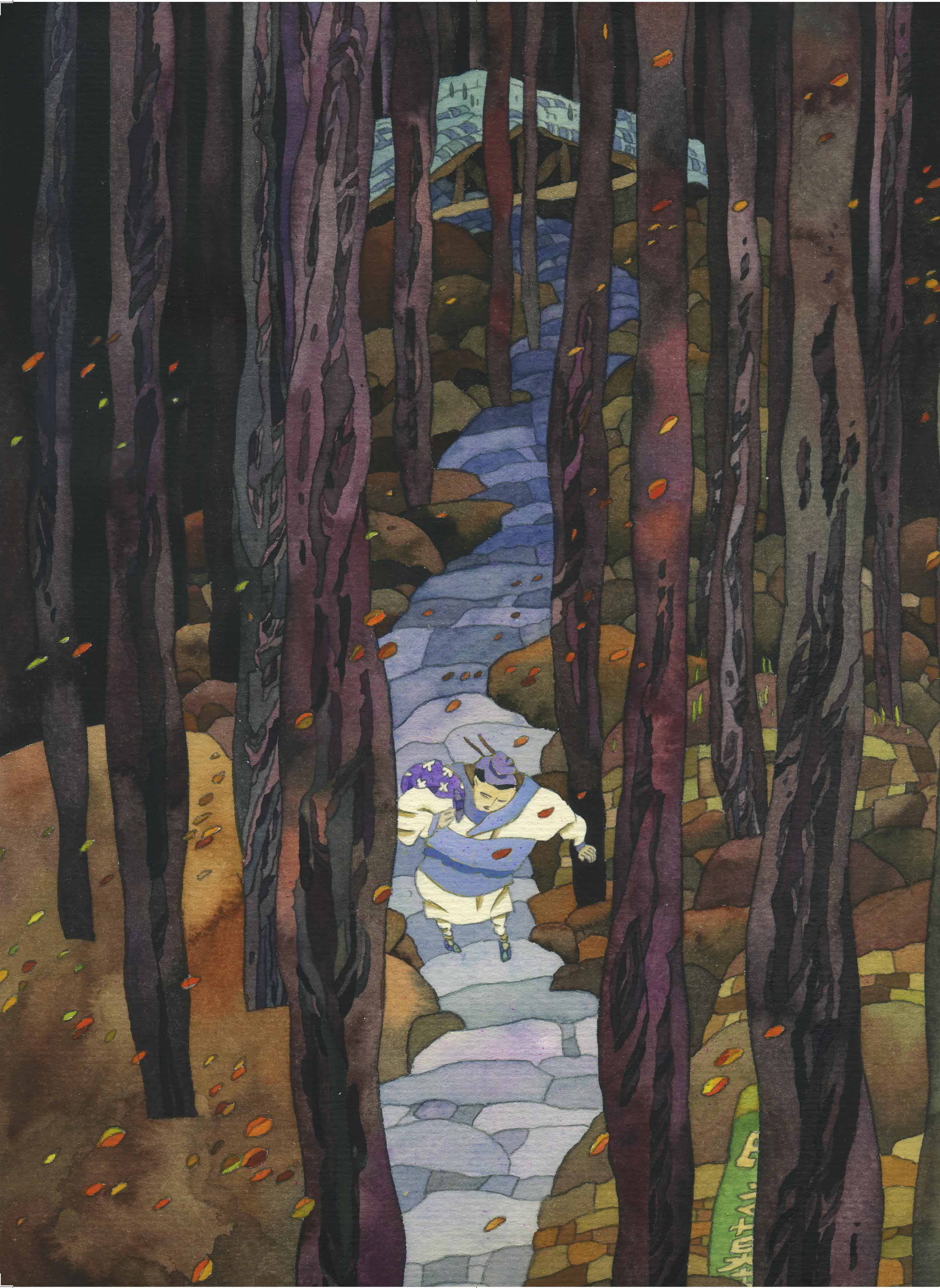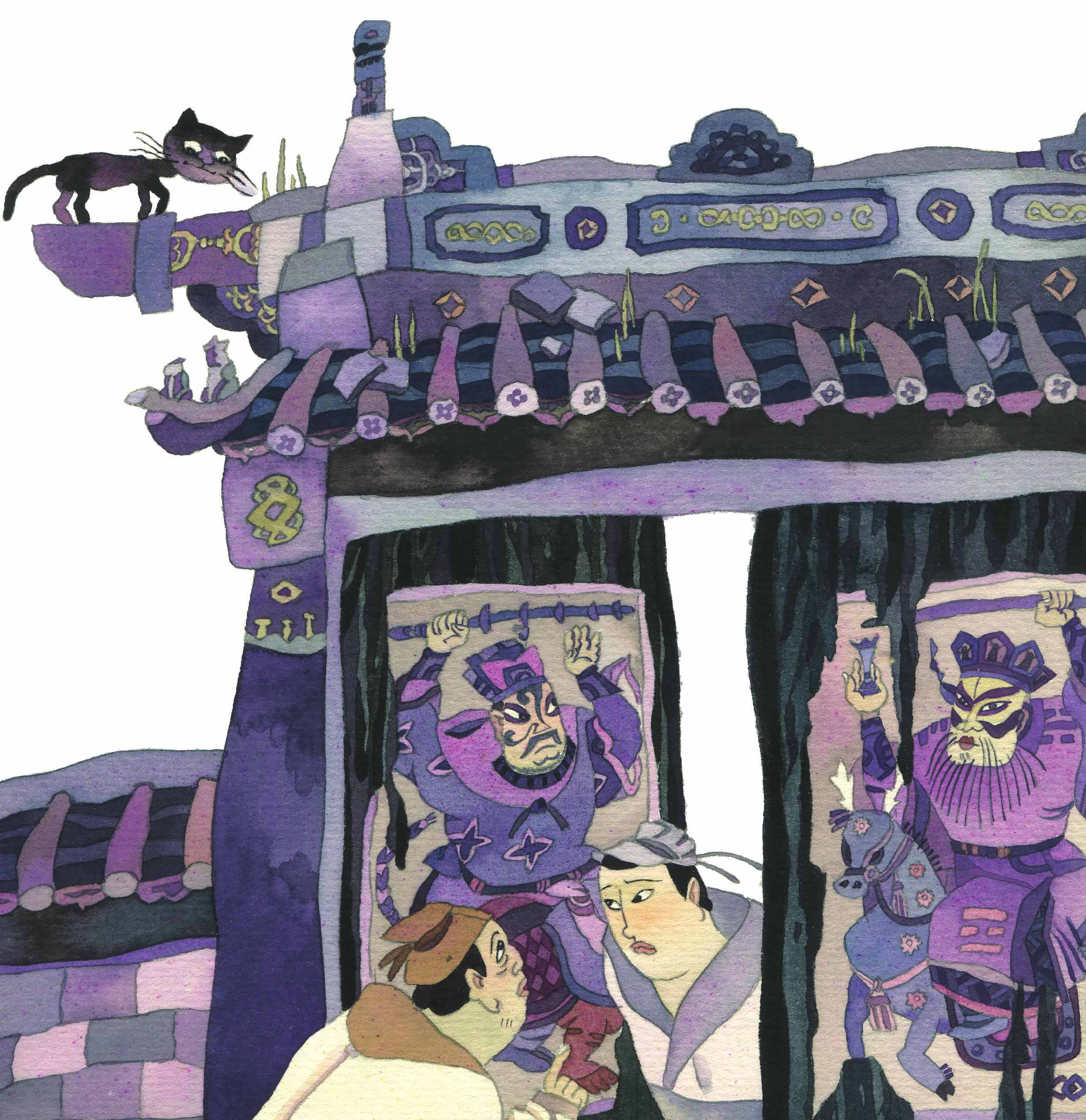 这时候,天空黑得好像扣上一口锅。胆小的人不敢走黑道,宋定伯他可不论这些个。过小桥,钻树林,只要是近路他就过。