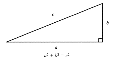 图2.1 毕达哥拉斯定理:任何直角三角形的斜边长 c 的平方等于另两边长 a 和 b 的平方和。