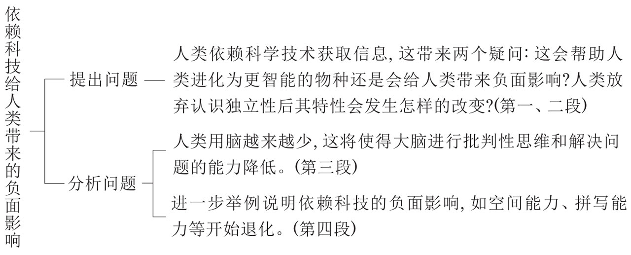 [文章大意] 本文讨论了人类依赖科技带来的负面影响。文章首先针对人类日益依赖科技成果的现象提出反思:使用科技设备有助于人类向更智能的物种进化还是削弱人脑技能?紧接着作者提出自己的观点:随着技术革新,人们用脑越来越少,因此大脑的空间和拼写等认知技能开始退化。