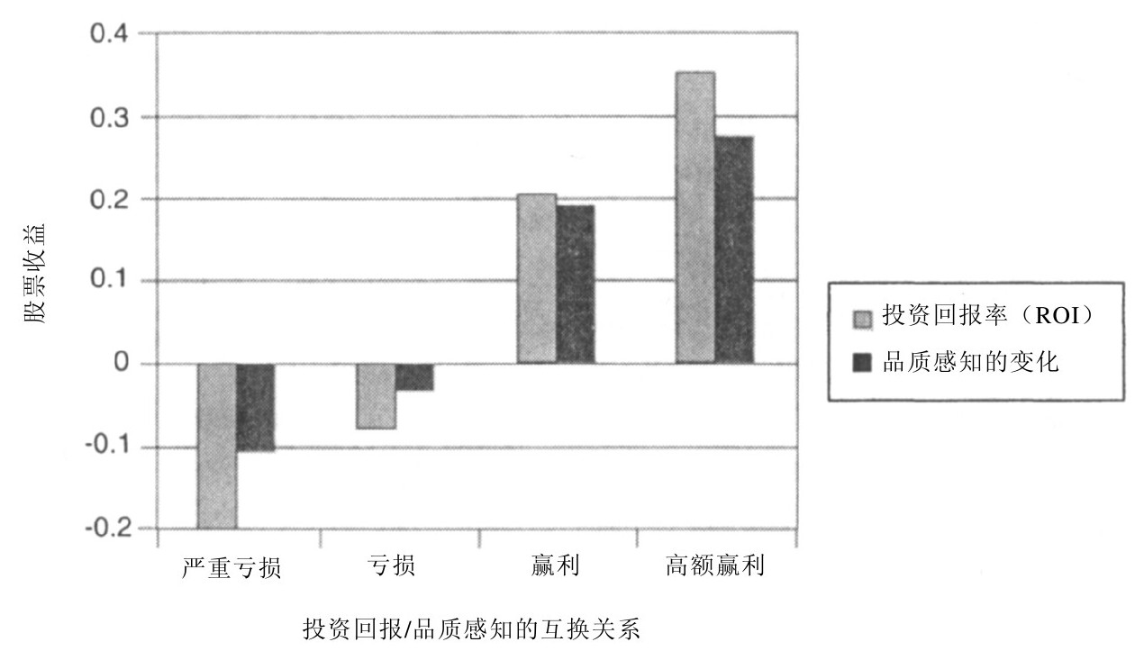 品牌资产产生溢价,从而带来利润,这在某种程度上影响了品牌资产和股票收益之间的相关性。对更大型的EquiTrend数据库的分析表明,品牌资产与溢价确有关联。所以,相较于竞争对手如富士胶卷、别克汽车、Lee牌牛仔裤、美国贺卡(American Greeting Cards)、柯达、梅赛德斯、李维斯和贺曼等溢价品牌拥有明显的品质感知优势。毫无疑问,这是一种互为因果的关系——强势品牌带来溢价,溢价又是优质品质的重要反映。如果企业已经产生(或者可能产生)高层次的品质感知,提价不仅能增加利润,还能强化消费者的正面感知。