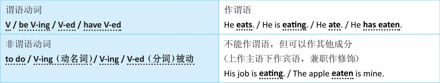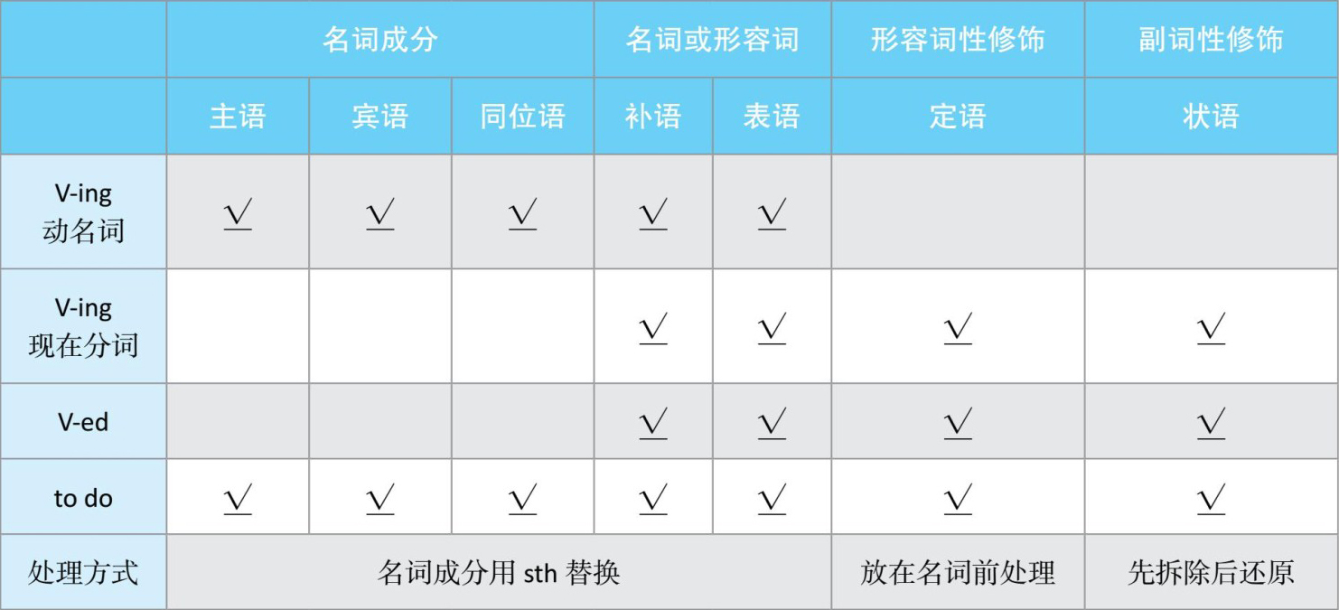 ● 第二张表告诉你全能的非谓语动词,除了作谓语之外,还能作什么?