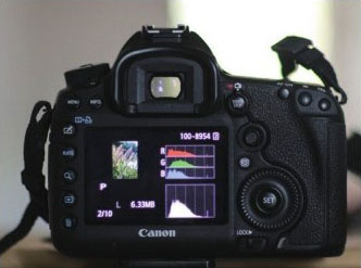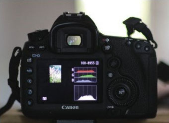 通过在相机上观察直方图,可以看出直方图左侧区域有一段空白区,画面曝光过度
