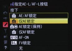 可以在自定义菜单“指定AE-L/AF-L按钮”中,设定按钮功能