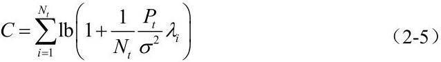 从式(2-5)与式(2-1)的对比可以看出,相对于单天线系统,多天线系统的容量有了成倍的提升。