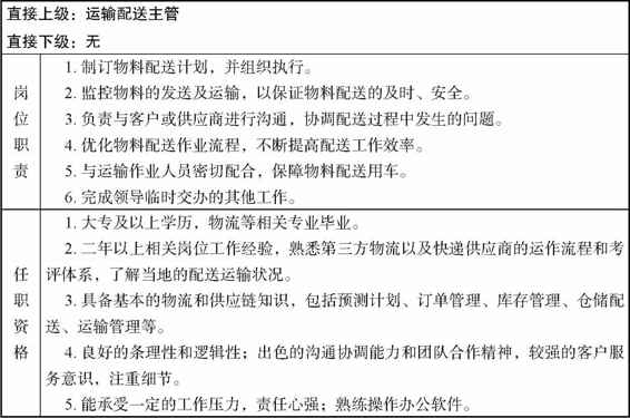 表1-20 配送专员岗位职责与任职资格 a5gFvtwqgGWT8xsYojDzV8+Zz86taik651pBrWG0u/QETuLLYZn0Pa40bp8HH1id