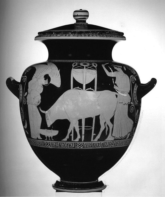 古希腊、古罗马时期的艺术可以说是西方艺术的摇篮,艺术家以现实生活中的人物、景物为原型,进行写实的绘画描绘。虽然是写实,但并不是一成不变的照搬,而是通过艺术加工,源于生活而又高于生活,产生了个性鲜活的绘画作品。在希腊,毕达哥拉斯学派把一切的现象归为数的标准,并以此来探索美,寻找事物的本质。古希腊人依据数的规律,按照数量来表示比例、形体、大小等,如人体的比例、结构、透视关系等都可以用数来衡量。古希腊人利用标准法则来完成建筑、雕塑艺术等的创作。古希腊早期的素描作品以简洁、质朴的线条表现,色彩主要是以单色来平涂。希腊陶瓶画非常有代表性,据传说,希腊绘画源于一个陶器匠人的女儿爱上了一位男孩,在这个男孩即将离开之时,作为留念,女孩在灯下把男孩的剪影画出,她父亲把画像做成了陶瓶画。图1-15所示为古希腊陶瓶画,作品中可以看到清晰的结构线。而后期的作品主要运用明暗表现的方法来表达物体的立体感。