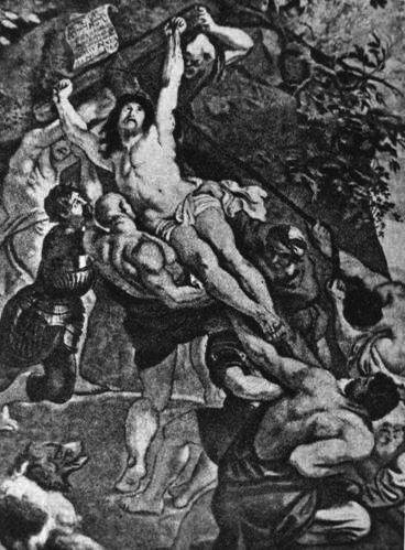 17世纪,欧洲素描由严谨细腻的艺术表现手法走向自由和多样化。这一时期,巴洛克艺术风格诞生于意大利的罗马,是一种以赞扬王权威严的贵族艺术,其作品气势宏伟、高贵庄严。“巴洛克”一词源出于葡萄牙语,指不合常规的、稀奇古怪的事物,在美术史上指违反古典艺术标准的艺术,换句话说,也就是从古典主义的约束中解放出来。巴洛克沿袭了文艺复兴后的风格,注重内心情感的表达,画面构图常常使用对角线、弧线等方式,物体造型强壮、夸张,追求动感,光影的黑白对比强烈。这一时期的画家进一步完善了通过黑、白、灰关系来表现物体的光影和立体感,明确了运用素描结构表现物体体积的画法。巴洛克艺术的代表人物绘画大师彼得·保罗·鲁本斯(Peter Paul Rubens,1577—1640),他的作品气势宏伟、高贵典雅、空间富于变化,创造出了一种生机勃勃的艺术表现方式。其作品题材有宗教神话、历史风俗、肖像等。他放弃了金字塔式的稳定构图,有时使用正反螺旋形缠结的形式,或是根据画面的节奏、夸张的人物动作来设计画面构图。他的绘画造型以线表现为主,创作了大量物象多样、运笔灵动的素描作品。鲁本斯的代表作品有《掠夺利西普斯女儿》《莱尔马公爵骑马像》《上十字架》《梅迪奇生平》《有彩虹的风景》等。图1-23所示为鲁本斯的作品《上十字架》,画面中的构图动势指向了上十字架的人,造型深入细腻。
