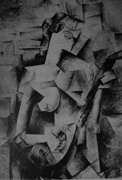 巴勃罗·鲁伊斯·毕加索(Pablo Picasso,1881—1973)是西班牙伟大的艺术大师,他和勃拉克一起创立了立体主义,对于西方现代艺术产生了很深远的影响。他们把有体积的物体进行了平面化的处理,明暗、线条、透视等都被忽略,将形体打散后重新组织这些部分,一幅画可以从多角度解读。毕加索的绘画表现题材广泛,并且每种题材都具有一定的寓意。他的作品常以独特的角度观察生活,分析和描绘物体的外部、内部、底部的结构。毕加索一生的艺术创作都是从内心出发,打破各种条条框框的束缚,其绘制的抽象人物、动物等具有强烈的视觉冲击力,使人产生无限的遐想。毕加索的速写作品运用多种表现技法,随心所欲地表现着形象。毕加索不愿别人与他的风格相同,他一看到别人模仿他的风格他便寻找另外一种表现方式。毕加索一生所创作的各种类型的作品达6万件以上。其代表作品有《亚威农少女》《格尔尼卡》《梦》等。图1-33所示为毕加索的作品《弹曼陀铃的少女》,他用抽象的块面对人物的造型进行了简化,造型十分大胆,给人带来很强的视觉冲击。