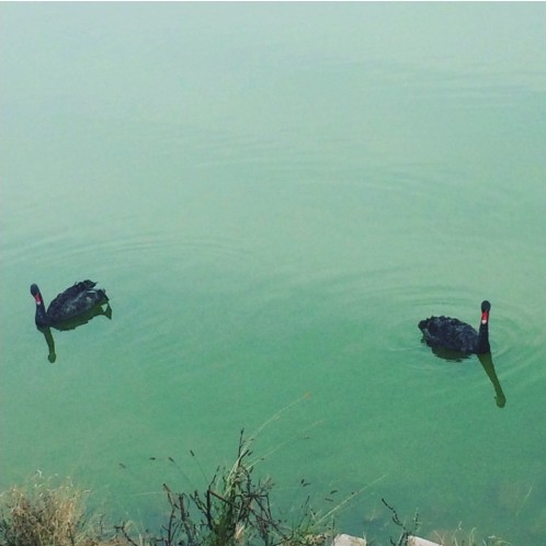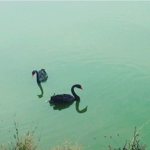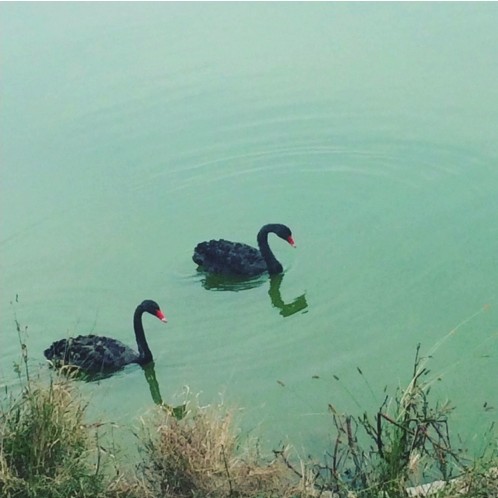 使用高速连拍模式拍摄游在水中的两只天鹅