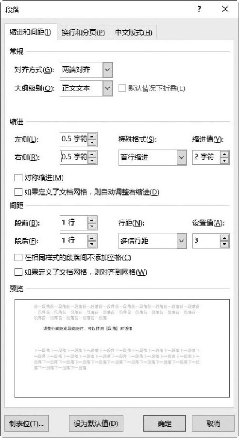 在编辑文档时,段前默认情况下需要首行缩进2个字符,切忌不可使用空格调整,可以在【段落】对话框【缩进和间距】选项下【缩进】组中来设置缩进。