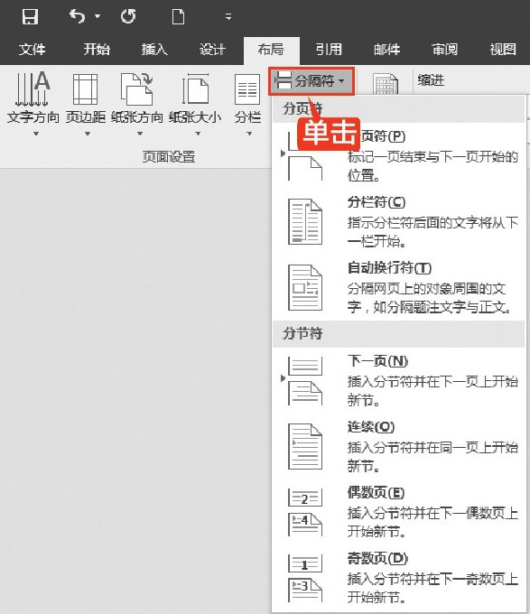 使用【Enter】键添加换行符可以达到分页的目的,但如果在分页前的文本中删除或添加文字,添加的换行符就不能起到正确分页的作用,可以单击【插入】选项卡下【页面】组中的【分页】按钮或单击【布局】选项卡下【页面设置】组中的【分隔符】按钮,在下拉列表中添加分页符,也可以直接按【Ctrl+Enter】组合键进行分页。