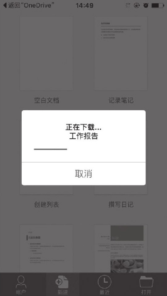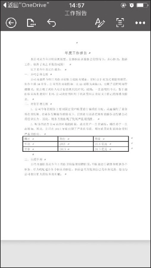下面就以在手机上通过Microsoft Word打开OneDrive中保存的文件并进行编辑、保存的操作为例介绍随时随地办公的操作。