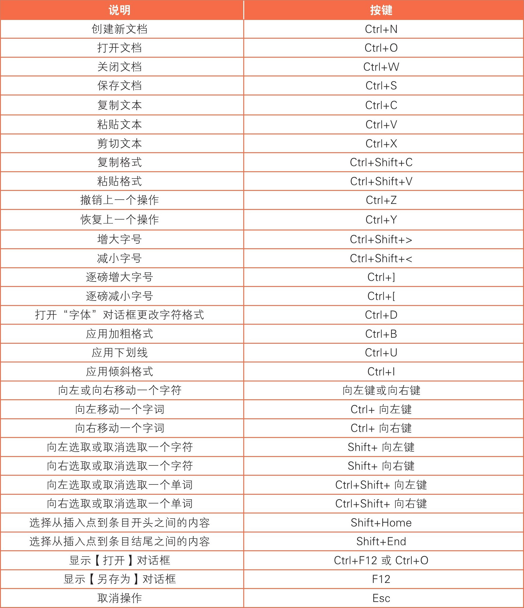 掌握Word、Excel及PowerPoint 2016中常用的快捷键可以提高文档编辑速度。
