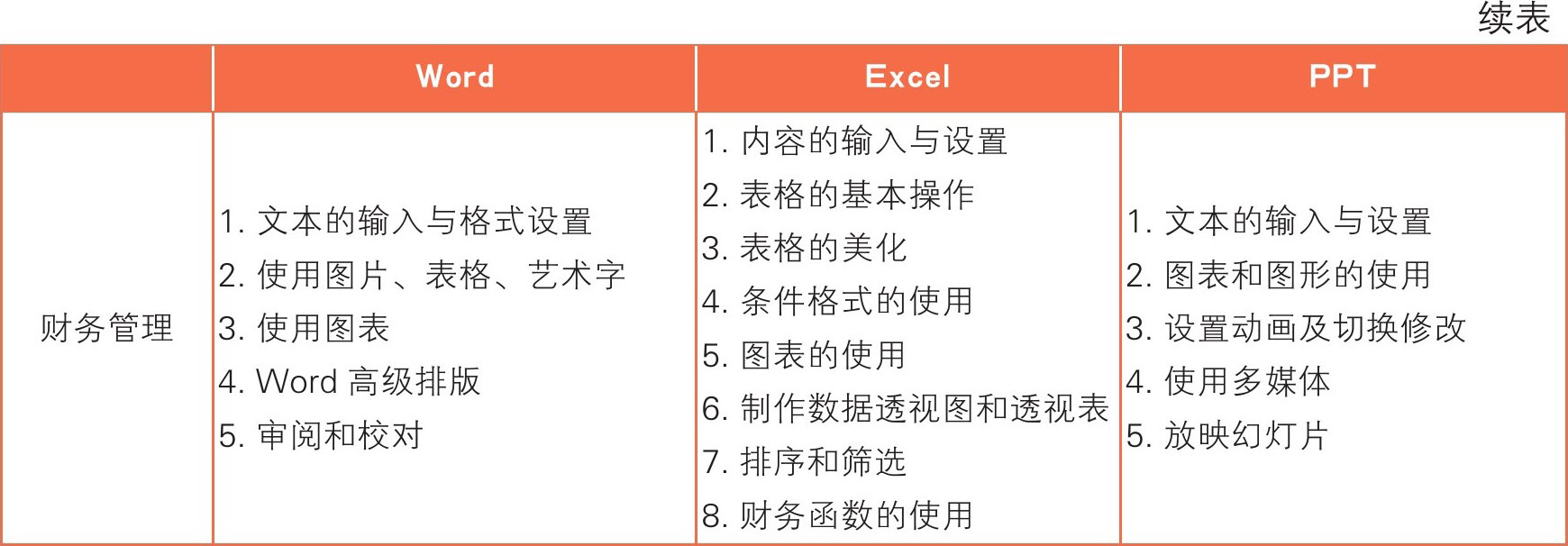 不同行业的从业人员对Word/Excel/PPT技能的要求不同,下面就以人力资源、行政文秘、市场营销和财务管理等行业为例介绍不同行业必备的Word、Excel和PPT技能。